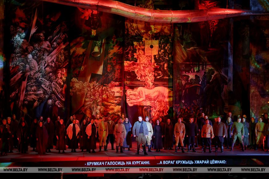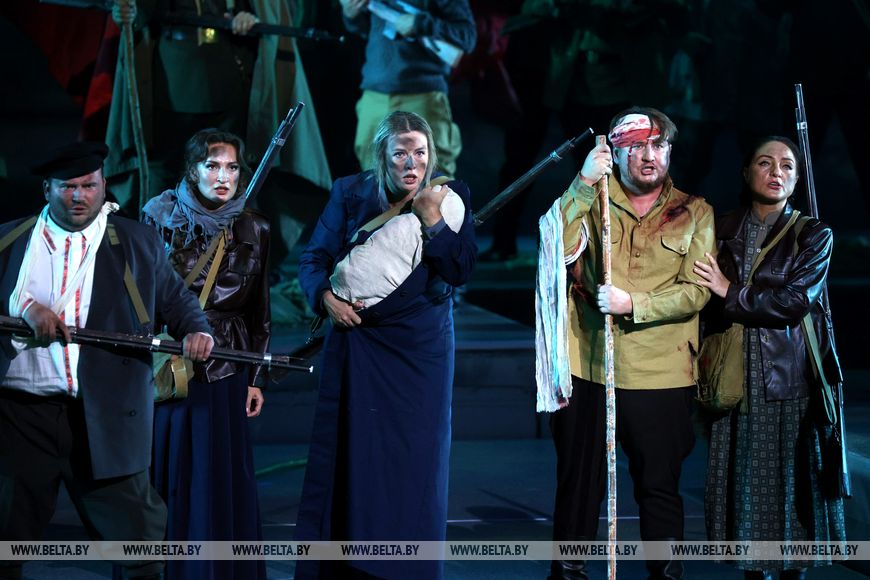 Большой театр Беларуси умеет делать яркие, запоминающиеся и драматичные постановки, которые трогают сердца зрителей. Но именно в "Патетическом дневнике памяти" соединились разные театральные жанры: опера и балет, пластическая драма и мистерия. Творческий проект основан на произведениях белорусских композиторов, созданных за последние 100 лет - с 1924 по 2024 год. Его премьера состоялась 22 сентября 2024 года - в год 80-летия освобождения Беларуси от немецко-фашистских захватчиков. Тогда на сцене впервые развернулась масштабная история страны в годы Великой Отечественной войны. Проект показывали не только на сцене театра, но и в Брестской крепости, а коллектив театра был удостоен специальной премии Президента Беларуси за значительный вклад в патриотическое воспитание и создание подобного проекта. Корреспондент БЕЛТА побеседовала с автором концепции и сценария, режиссером-постановщиком "Патетического дневника памяти", обладателем медали Франциска Скорины Анной Моторной и узнала, как создавалась постановка, завоевавшая уважение и любовь публики.