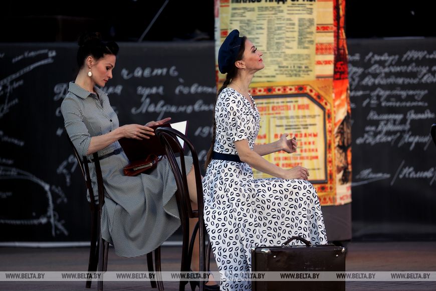 - Самые главные образы - Хатынь, геноцид, Брестская крепость, лагеря смерти. Здесь сожженные белорусские деревни и разрушенные города не просто картинка, а настоящее прошлое, которое невозможно изменить. Постановка дает возможность окунуться во внутреннюю жизнь театра, ближе увидеть работу всех трупп и худсовета. Вначале на сцене представлено довоенное время, поездка театра на первую культурную декаду в Москву, процесс создания оперы Тикоцкого "Алеся" об отношениях двух влюбленных на фоне партизанской борьбы.