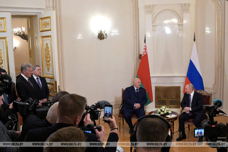21 декабря, Санкт-Петербург /Корр. БЕЛТА/. Беларусь и Россия подают хороший пример и являются локомотивом интеграционных процессов на постсоветском пространстве. Об этом Президент Беларуси Александр Лукашенко заявил на встрече с Президентом РФ Владимиром Путиным, передает корреспондент БЕЛТА.