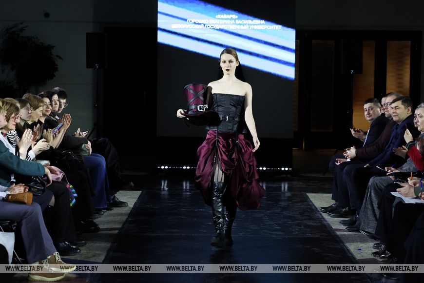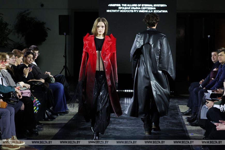 Студентка Академии архитектуры и искусства Южного федерального университета (Россия) Мария Рунец-Бац привезла на конкурс коллекцию нарядной женской одежды "Импера". Источником вдохновения для будущего дизайнера послужил рыцарский средневековый костюм, в частности образ Жанны д'Арк. "Также я вдохновлялась музыкальным альбомом шведской рок-группы Ghost. Поэтому моя коллекция - смесь средневекового и современного, это образ сильной женщины, актуальный на сегодняшний момент. Цветовая гамма коллекции также отсылает к рыцарству. Выбор материалов пал на цепи и метал - это и тренд, и отсылка к Средневековью. Для меня фестиваль является хорошей возможностью показать себя, увидеть, как у других, обменяться опытом, возможно, познакомиться с коллегами и обменяться творческими флюидами. В Беларуси я впервые, было интересно приехать в Минск, до сих пор нахожусь под впечатлением от архитектуры города", - рассказала девушка.