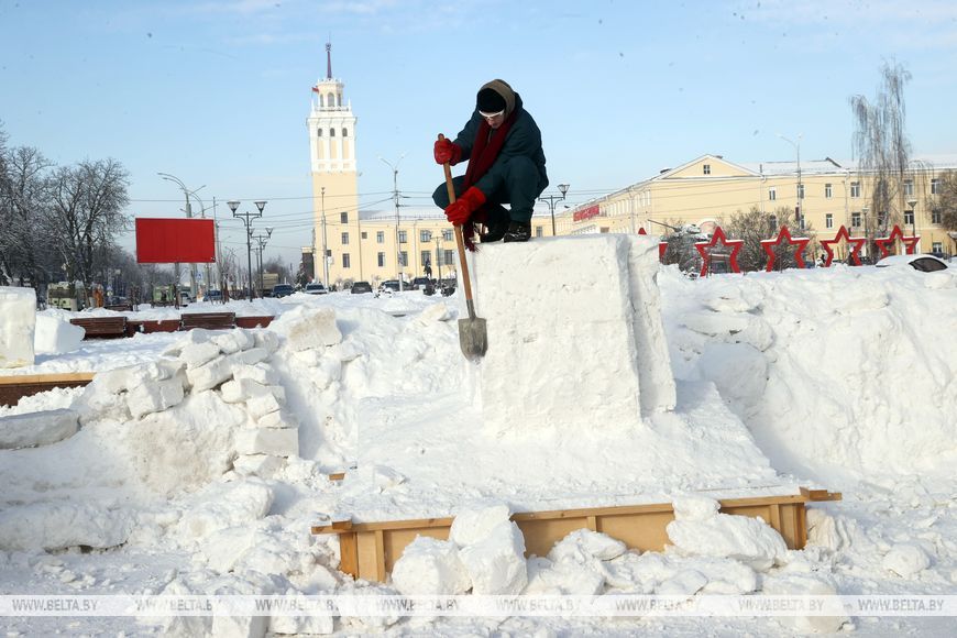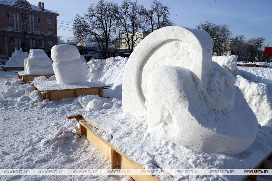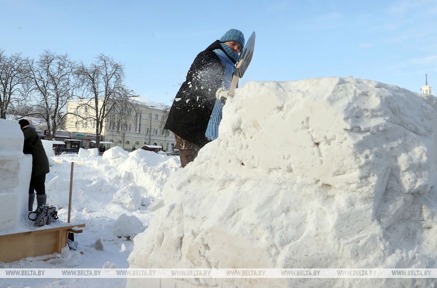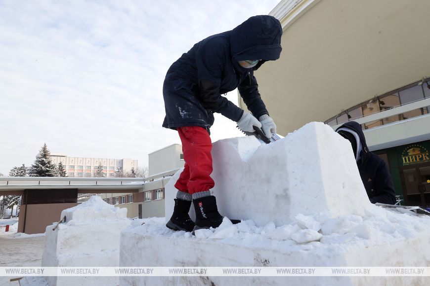 20 января, Гомель /Корр. БЕЛТА/. Нынешняя снежная и морозная зима позволяет провести в Гомеле фестиваль снежных скульптур. На площадке собрано более 10 снежных заготовок, и мастера из разных городов нашей страны приступили к творческой работе. В качестве вспомогательного инструмента используются обычные ножовки, лопаты и строительные мастерки.