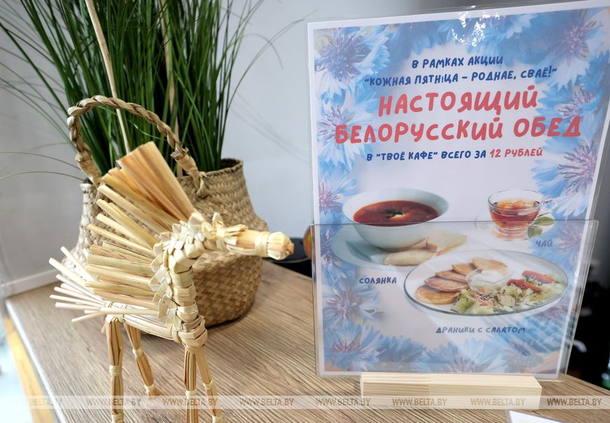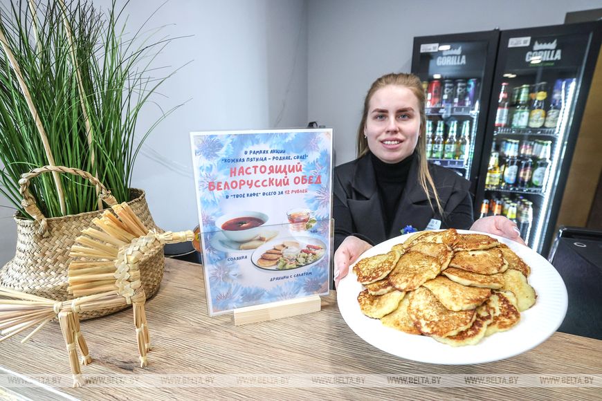 Кстати драники в кафе готовят исключительно из белорусской картошки. "Только из нее получаются самые вкусные блюда, которые нравятся и взрослым, и детям. Бывает, к нам приходят бабушки с внуками, предлагают им пиццу, а ребята просят именно драники", - отметила директор кафе.К общенациональному проекту "Кожная пятнiца - роднае, сваё" могут присоединиться все желающие, отдав по пятницам предпочтение традиционным блюдам, просмотру белорусского кино, музыке отечественных исполнителей, одежде, произведенной в республике. Проект направлен на повышение культуры потребления, продвижение и популяризацию белорусских товаров, разнообразия белорусских блюд и красоту родного языка.-0-