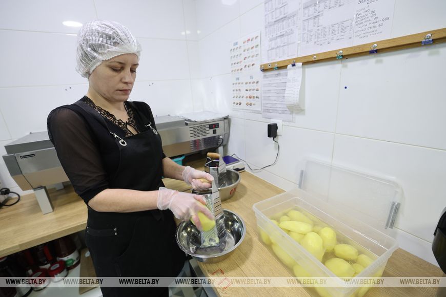 6 февраля, Городок /Алеся Пушнякова - БЕЛТА/. Драники по традиционному семейному рецепту предлагают в одном из кафе в Городке в рамках общенационального проекта "Кожная пятніца - роднае, сваё". Директор и посетители кафе рассказали корреспонденту БЕЛТА, что из "роднага" они предпочитают.В эту пятницу в кафе предлагают сет с традиционным национальным блюдом - драниками. Их рецепт принесла сюда директор заведения Диана Гуринова. "В меню всегда есть драники, несмотря на то, что у нас несколько другое направление. Рецепт передала мне мама, а она позаимствовала его от своей мамы, а та - от своей. Даже не могу сказать, сколько поколений в нашей семье им пользуются. Мы перенесли этот рецепт на технологическую карту, и в день открытия это блюдо было самым ходовым", - поделилась она.