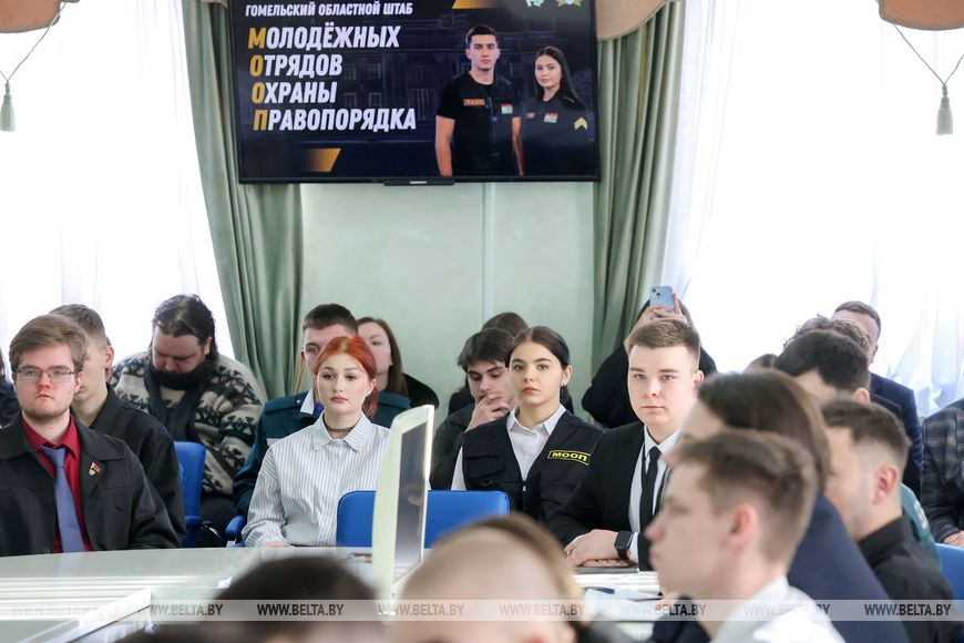 В Зале доблести областного управления МЧС собрались представители МООП всех районов юго-восточного региона, Гомеля. Как отметил первый секретарь областного комитета ОО "БРСМ" Игорь Назарчук, в Гомельской области более 1 тыс. бойцов Молодежных отрядов охраны правопорядка. "Ребята не только (помогают в обеспечении. - Прим. БЕЛТА) порядка на культурно-массовых, спортивных мероприятиях. Также они были задействованы в том числе в избирательной кампании. Безусловно, вовлечены и в наши знаменитые проекты - "Я служу", "Зимний патруль", - рассказал молодежный лидер области.