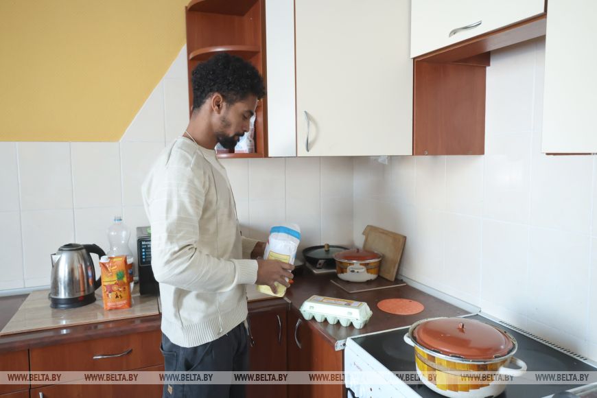 Как рассказал молодой человек, пищу для себя ребята в основном готовят сами. Закупают в магазине белорусские продукты и "колдуют" на кухне. Готовят и свои традиционные блюда, и обычную еду. Так, говорит парень, обходится экономнее. Даже хлеб выпекают по своим рецептам из нашей лидской муки. Первый опыт - позитивный, ждут еще четверых