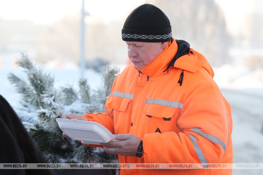 "Мы не могли остаться в стороне от ситуации, поэтому поддерживаем тех, кто трудится в холодных условиях. Надеюсь, акция поможет тем, кто делает жизнь белорусов комфортной и уютной. Также контролируем достойное бытовое обеспечение сотрудников, наличие средств индивидуальной защиты, соблюдение необходимых перерывов на обогрев и отдых. Каждый из нас столкнулся с последствиями снежной стихии: снега выпало более чем 40 см. Героями борьбы со стихией являются работники жилищно-коммунального хозяйства. Их труд сложный не только зимой, летом это постоянные покосы травы, осенью - уборка листвы. Но в морозную погоду все равно очень тяжело работать", - отметила заместитель председателя профсоюза работников ЖКХ и сферы обслуживания Лариса Гордон.