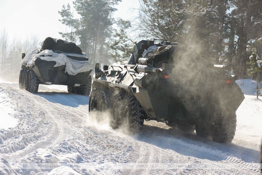 10 февраля, Борисовский район /Корр. БЕЛТА/. Внезапная проверка в Вооруженных Силах по поручению Президента Беларуси продолжается. Военнослужащие 120-й отдельной гвардейской механизированной бригады совершают марш в назначенный район, передает корреспондент БЕЛТА.