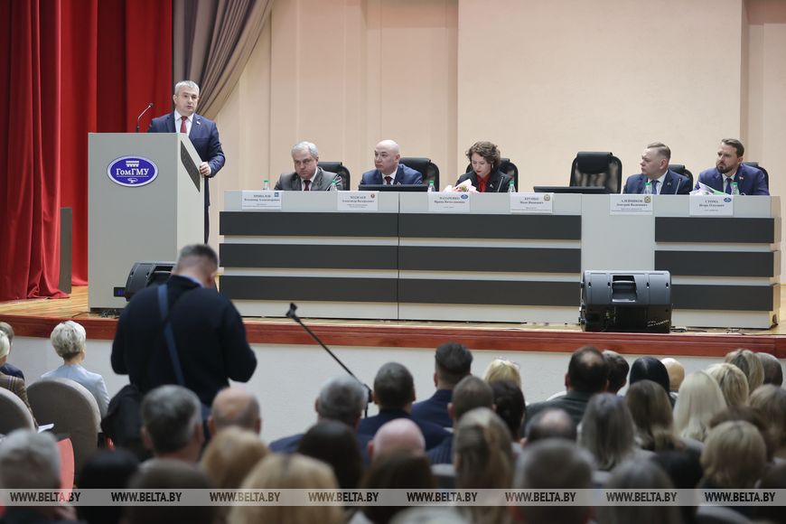 "Вуз в рамках кадровой работы - серьезная опора для всей Гомельской области. Большая часть выпускников вуза - врачи наших районных, городских, областных больниц. Уверен, что и в дальнейшем работа, выстроенная предыдущим ректором, будет серьезно развиваться", - подчеркнул председатель Гомельского облисполкома Иван Крупко.-0-