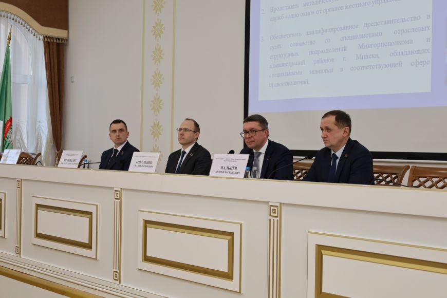 Характеризуя работу органов принудительного исполнения Минска за прошлый год, министр отметил хорошие показатели взысканных по решению судов и на основании других исполнительных документов денежных средств. Активно велась работа по сокращению остатков прошлых лет, однако в этом плане еще необходимо работать, подчеркнул он. Кроме того, актуальным остается вопрос нагрузки на судебных исполнителей. Говоря о других направлениях деятельности главного управления юстиции Мингорисполкома, Евгений Коваленко отметил работу, которая проводилась в соответствии с поручением Президента по всей республике всеми нормотворческими органами - республиканскими, местными. Имеется в виду ревизия законодательства, направленная на выявление актов, утративших силу, часто корректируемых, требующих глобальной, комплексной актуализации, а также тех, которые могут быть объединены, переработаны.