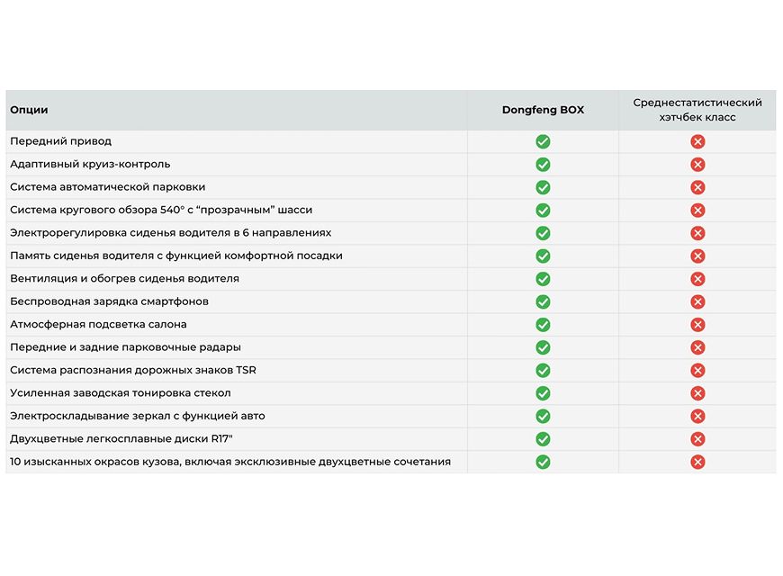 Выбирая Dongfeng BOX, вы получаете премиальный электрокар с передовым смарт-пакетом, объединяющим функции, которые у других зачастую отсутствуют вовсе. BOX предлагает грамотное сочетание технологий, комфорта и функциональности, формируя новый стандарт владения электромобилем. Технологии, комфорт и функциональность Dongfeng BOX теперь ближе благодаря льготной программе "Легка ехаць". Начните владеть бестселлером* на самых выгодных у дистрибьютора условиях.