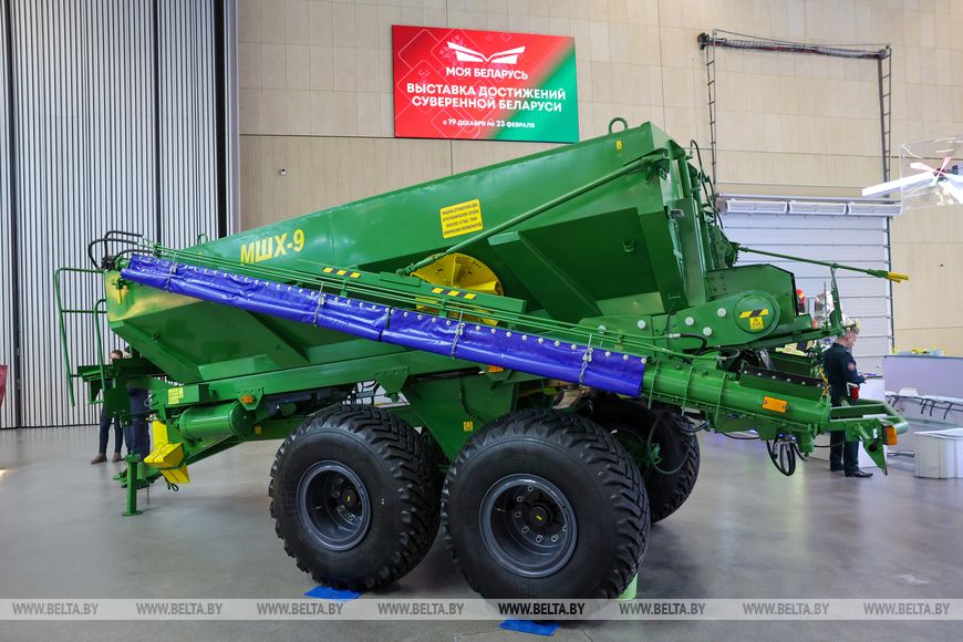 "Объем бункера машины составляет 10 куб.м. Она оснащена двумя видами рабочих органов - шнековыми штангами и центробежным разбрасывающим органом, или "тарелками". Шнековые штанги увеличивают точность внесения. В случае повышенной влажности мелиората, не позволяющей воспользоваться штангами, возможно внесение пылевидных химмелиорантов с помощью "тарелок". Машина оснащена ветрозащитными фартуками. Меньше пыли при работе, а это только плюс для экологии. Ширина внесения - 8-10 м, рабочая скорость составляет 6-10 км/час. Агрегатируется МШХ-9 с тракторами 3-го тягового класса и выше. Управление работой разбрасывателя осуществляется из кабины трактора", - рассказал заместитель генерального директора "Бобруйскагромаш" по качеству Андрей Аксенов. Применяя МШХ-9, сельхозпроизводители получают экономию времени на внесение удобрений, уменьшенное количество проходов по полю, а значит, и экономию горюче-смазочных материалов, сокращение парка техники для внесения удобрений благодаря большему объему и универсальности разбрасывателя.