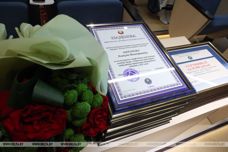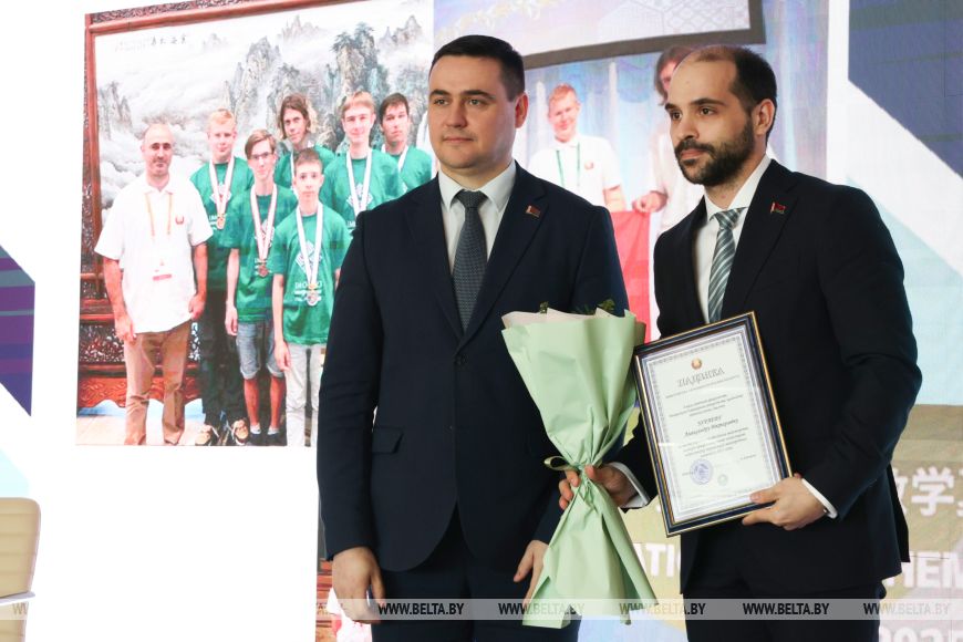 На встрече с заместителем премьер-министра присутствовала школьный наставник Николая Мисиюка - учитель географии гимназии №2 Бреста Юлия Богдасарова. Педагогу была вручена благодарность за подготовку победителя.