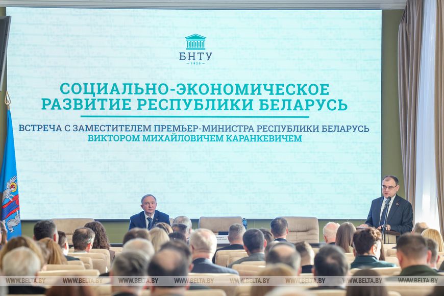 Мероприятие было посвящено недавно прошедшему второму заседанию VII Всебелорусского народного собрания и программе социально-экономического развития страны. "Мы говорим о задачах, которые были поставлены главой государства, об основных направлениях деятельности нашей страны на текущую пятилетку - уже на 2026-2030 годы. Обсуждаем, на что нужно обратить внимание, а это на развитие науки, инноваций, на то, что будет закладываться в развитие промышленности, реального сектора экономики, реализации инновационных, импортозамещающих проектов, которые в дальнейшем будут направлены на повышение качества выпускаемой продукции, конкурентоспособности как внутри страны, так и за ее пределами. Также во внимании вопросы демографии, дальнейшая подготовка и обучение востребованных специалистов, вопросы развития социальной сферы, инвестиций, инфраструктуры. В целом это все будет направлено на повышение уровня качества жизни наших граждан", - сказал Виктор Каранкевич.